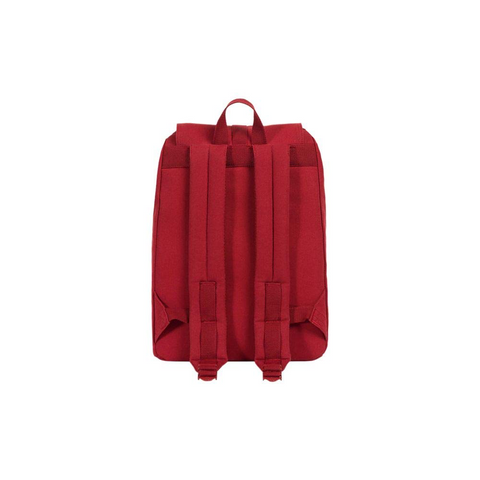 Toile en coton lavée à 12 onces, doublure en tissu rayé noir et blanc, housse pour ordinateur portable 13’’, fermeture à cordon de serrage ajustable, détail de points matelassés, compartiments de rangement extérieurs, accents de sangles en coton sur les bretelles, finitions cousues et languette en tissu rayé personnalisées, étiquette tissée classique sur divers tons.